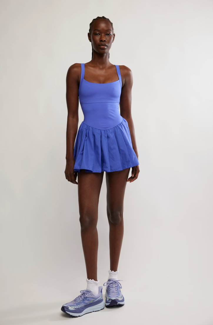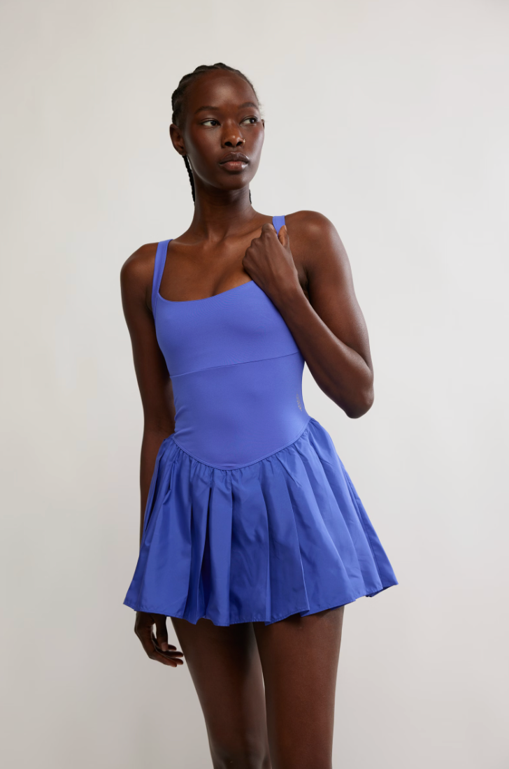 Sporty yet feminine, the Swing of Things Dress is designed to move with you. Featuring a fitted bodice, wide straps, and a pleated mini skirt, it’s the perfect blend of comfort and style. The bold pulse blue shade brings fresh energy to your activewear lineup.