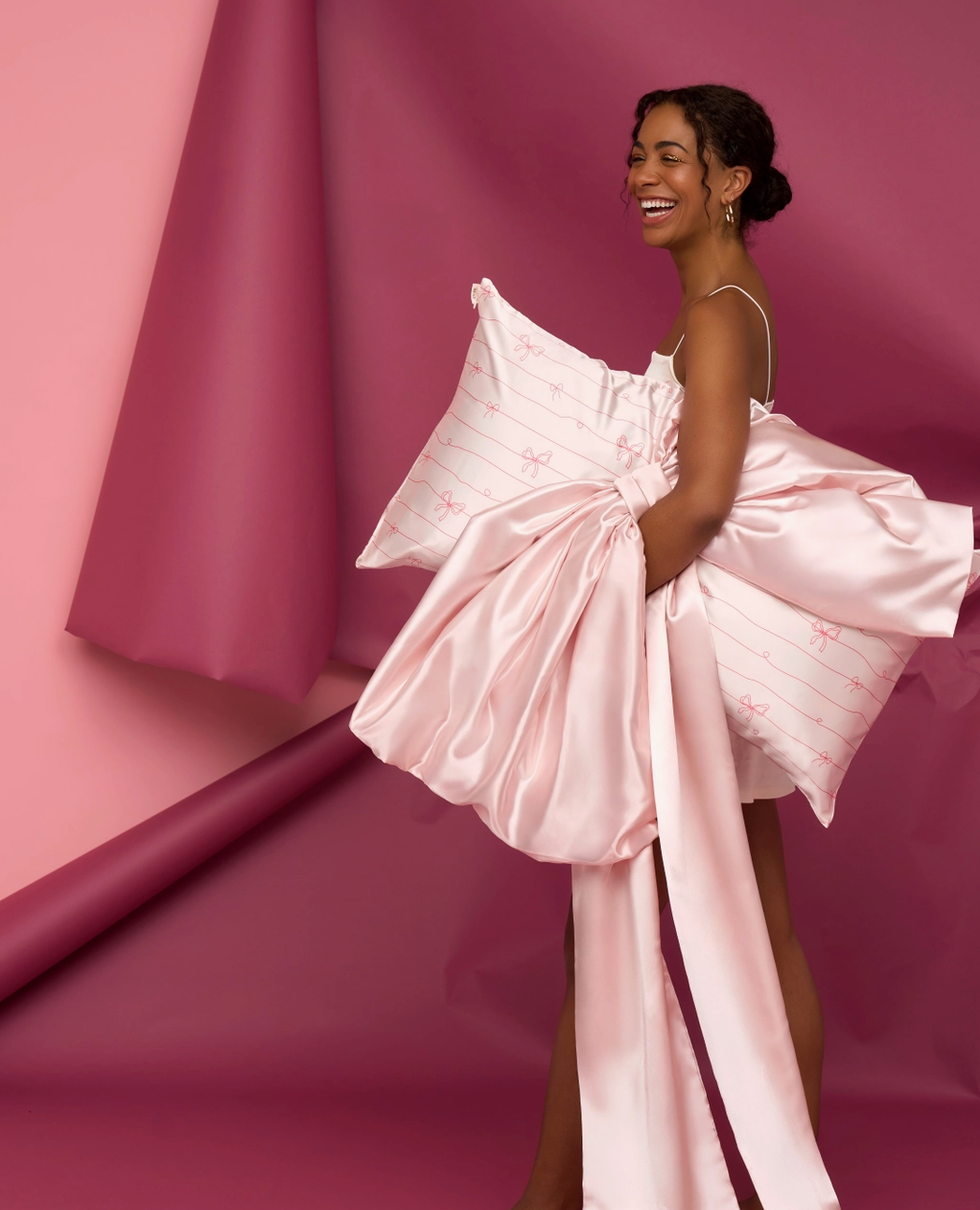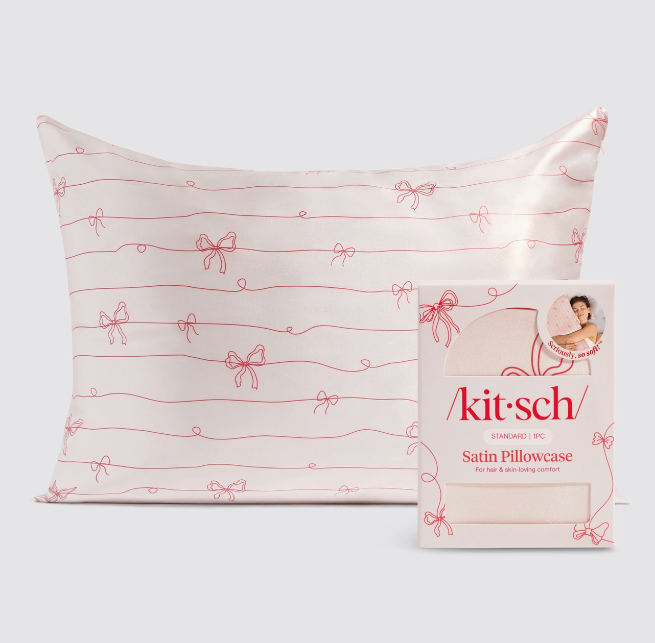 Kitsch Holiday Satin Pillowcase – Striped Bow