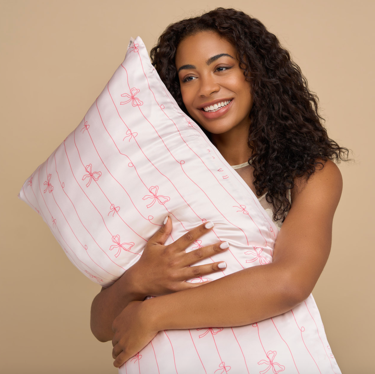 Wrap yourself in festive comfort with the Kitsch Holiday Satin Pillowcase in Striped Bow. Featuring a sweet ribbon-inspired print on soft blush satin, this pillowcase adds a touch of holiday charm while keeping your hair and skin smooth all season long. Designed to minimize frizz, prevent breakage, and reduce sleep lines, it’s the perfect combination of beauty and coziness—because your beauty rest deserves a little gift wrap, too.