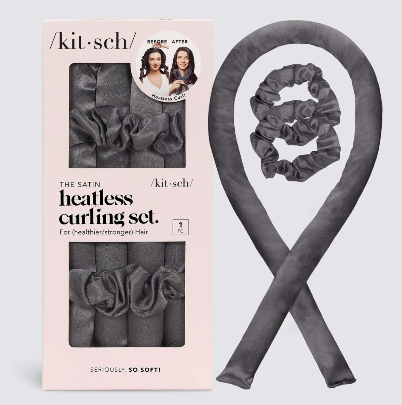 KITSCH SATIN HEATLESS CURLING SET IN CHARCOAL
