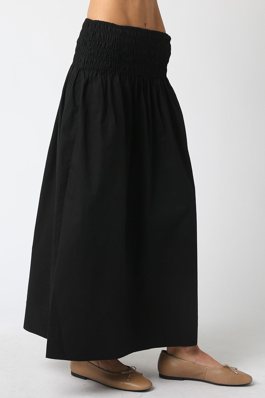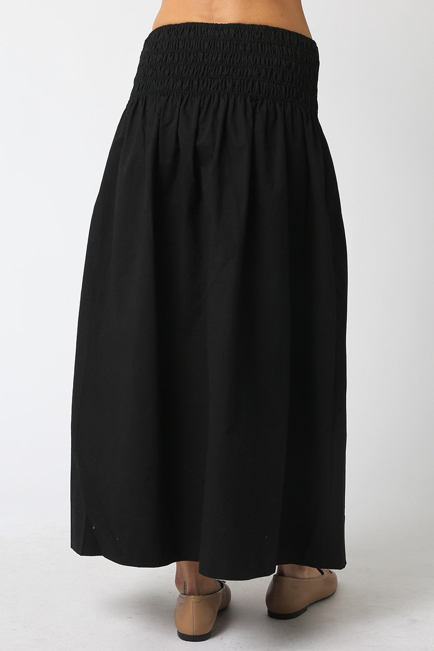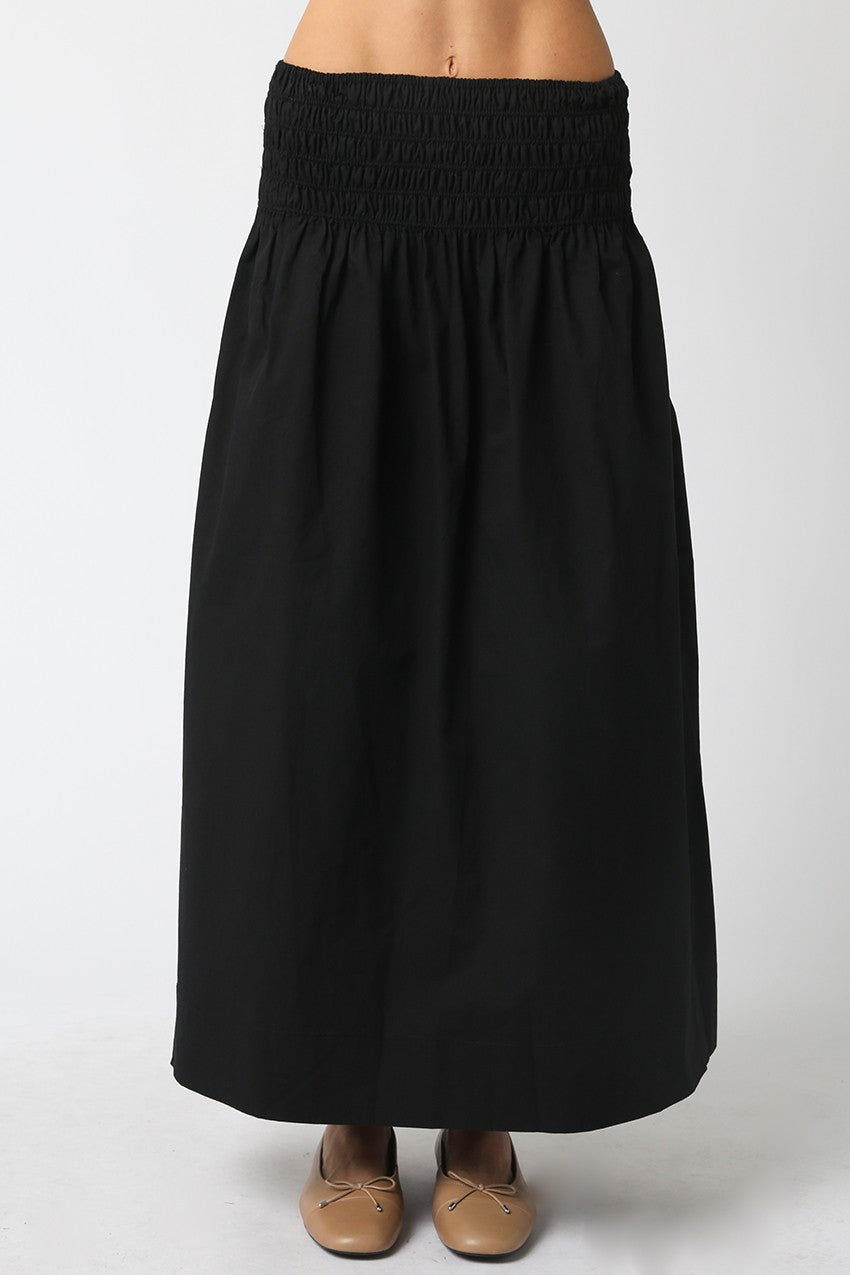 Effortlessly polished with an easy, feminine feel, the Nori Poplin Skirt is your go-to for elevated everyday dressing. Designed with a flattering smocked waistband, it sits comfortably at the waist while creating soft, flowy volume through the skirt. The crisp poplin fabric gives it that clean, structured look while still feeling lightweight and breathable. Dress it up with a fitted blouse or keep it casual with a simple tee—this one does it all.