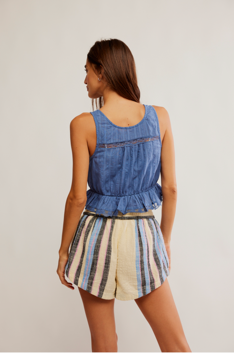 FREE PEOPLE ALANA LACE TANK IN BLUE TOPAZ