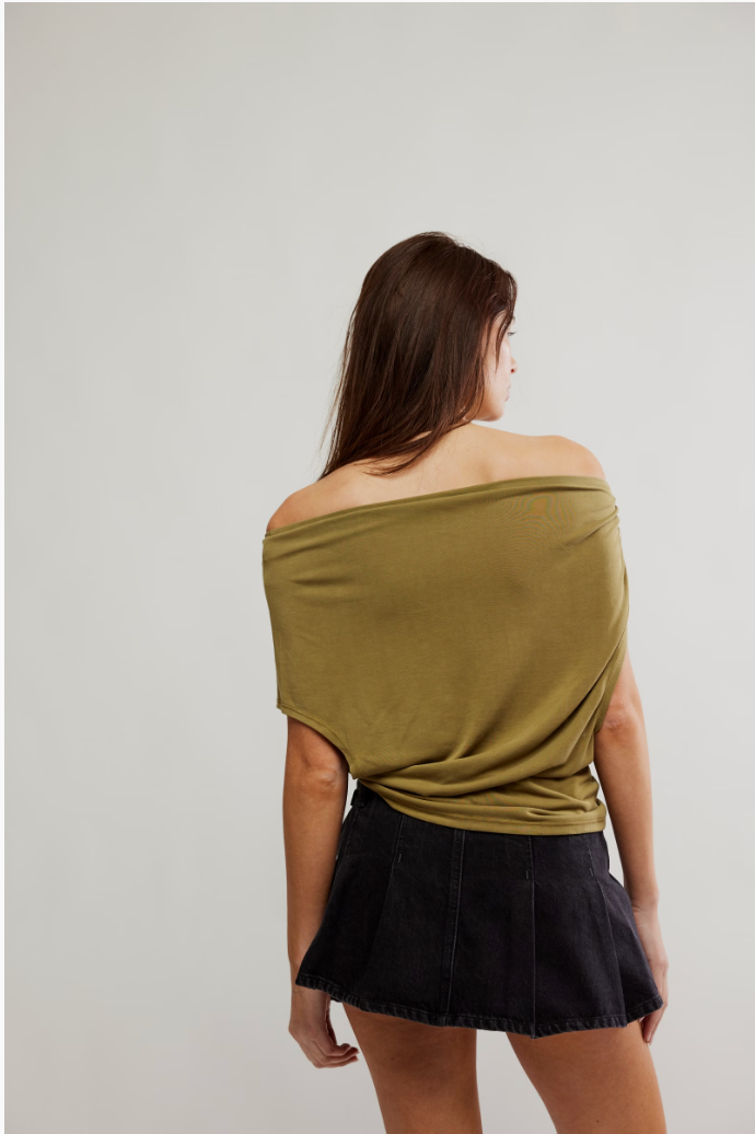 Wide boat neckline that can be styled off-the-shoulder