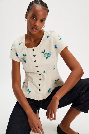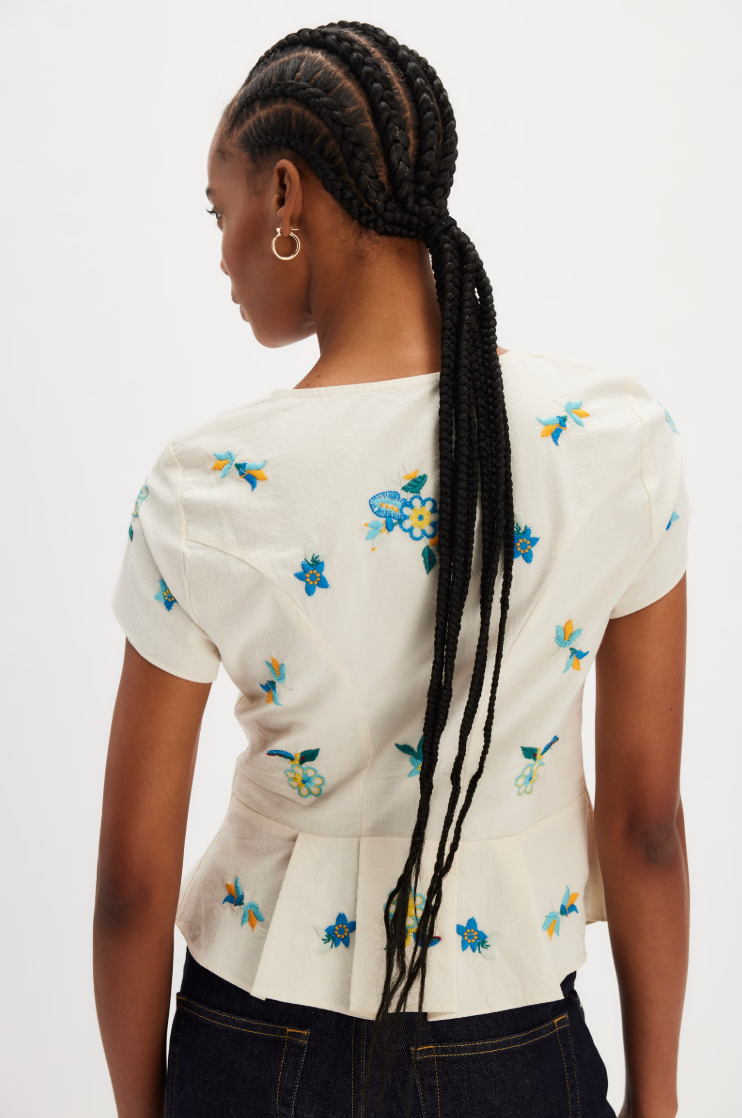 FREE PEOPLE KELLY EMBROIDERED BLOUSE IN IVORY