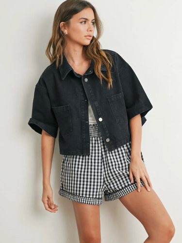 BUTTON FRONT CROPPED SHIRT IN BLACK