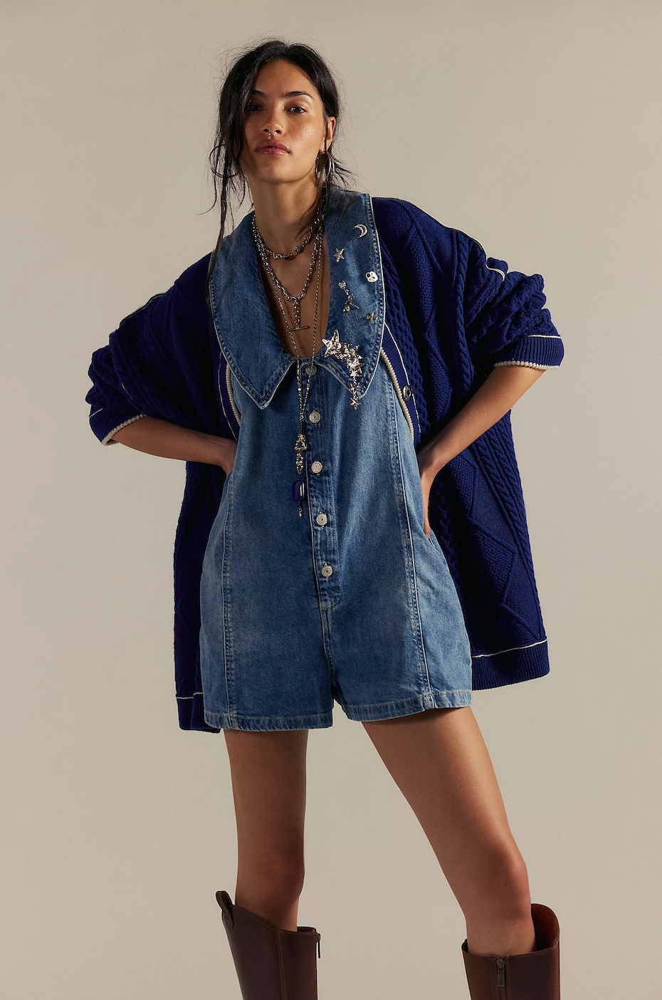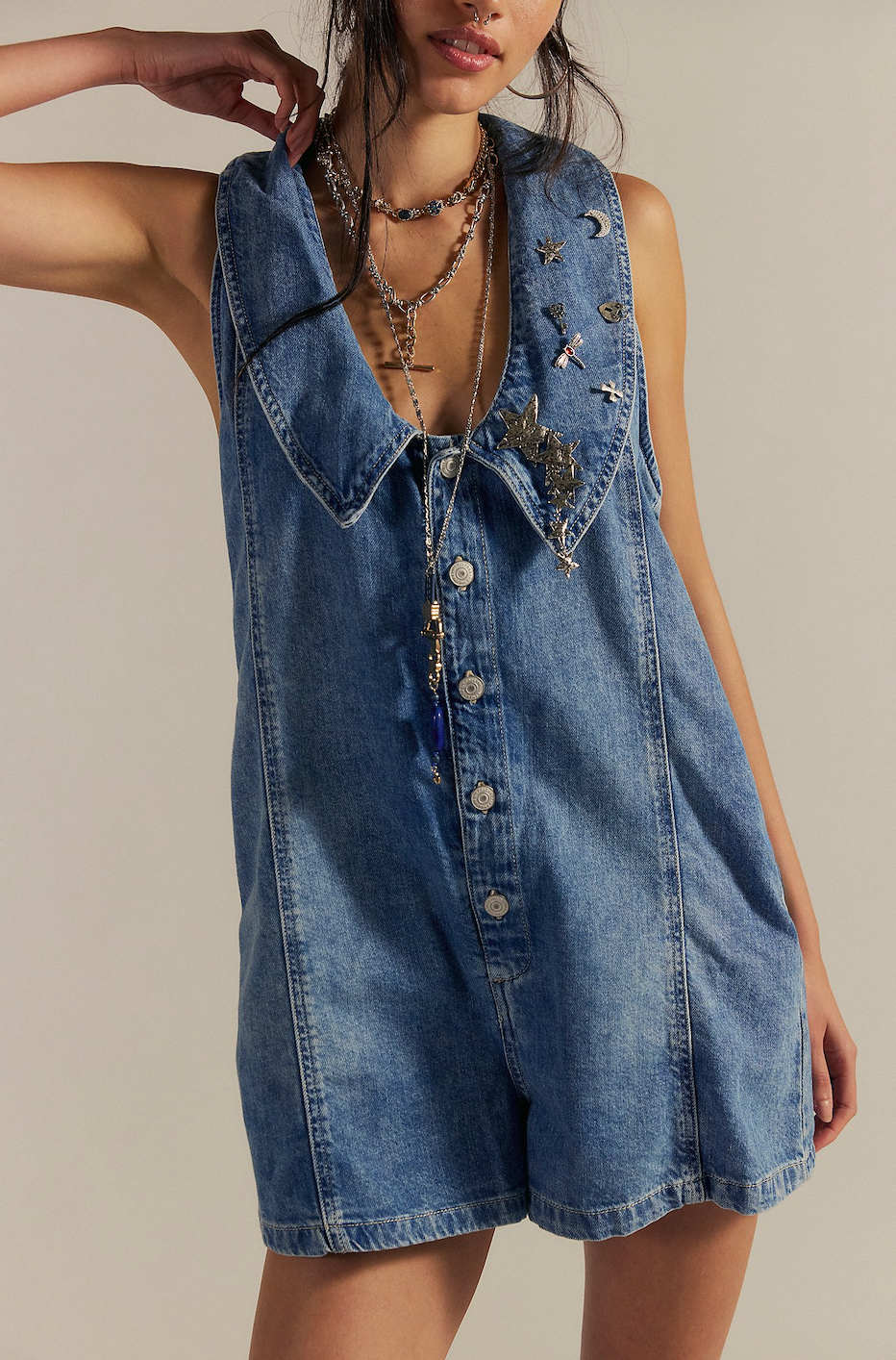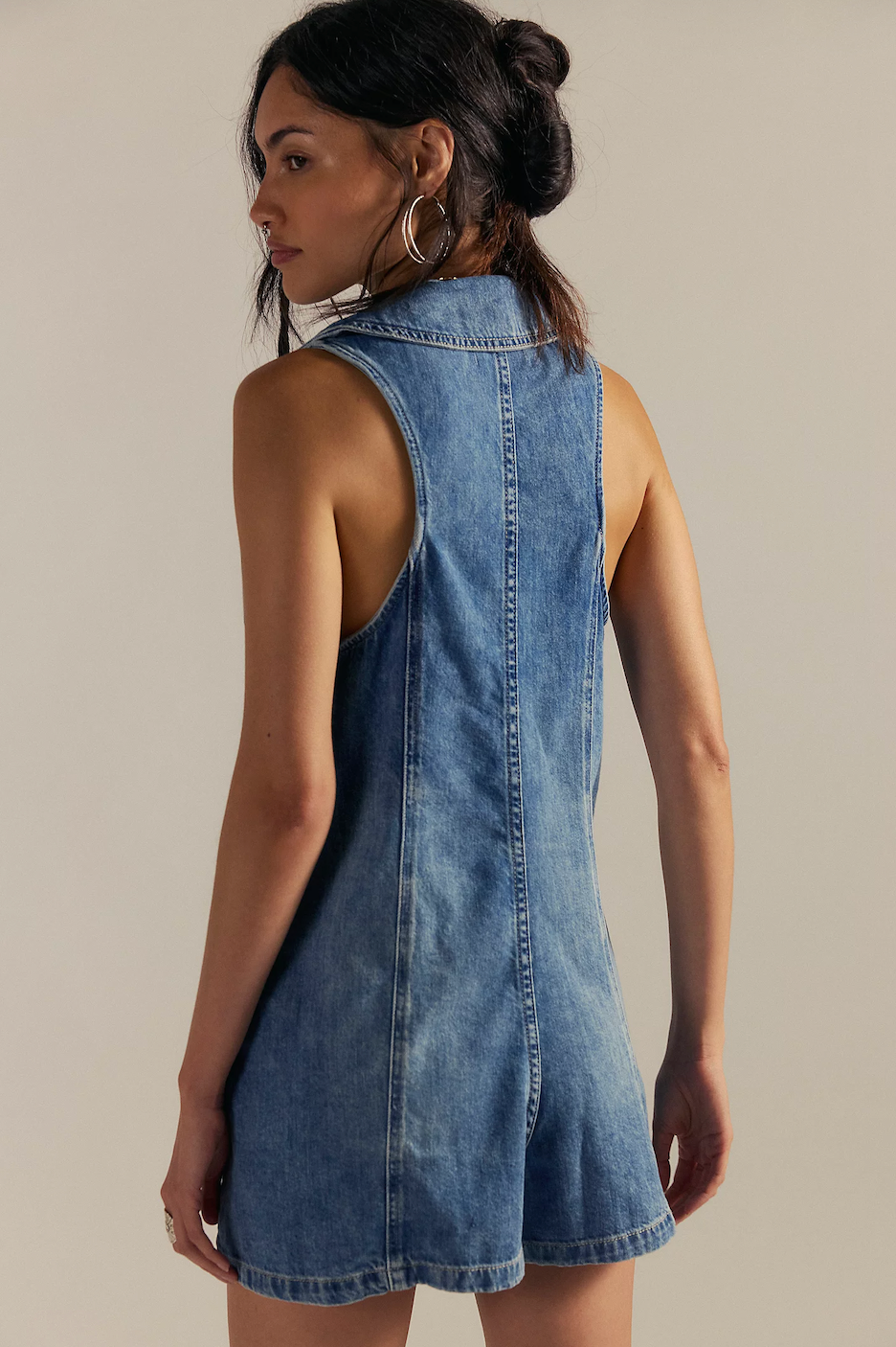 A laid-back denim playsuit with a cool, vintage feel. Designed with a relaxed A-line fit and effortless button-front styling, it’s the perfect throw-on-and-go piece with just enough detail to stand out.