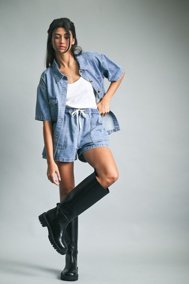 GISELLE TWEED SHORT SET IN HAZY BLUE