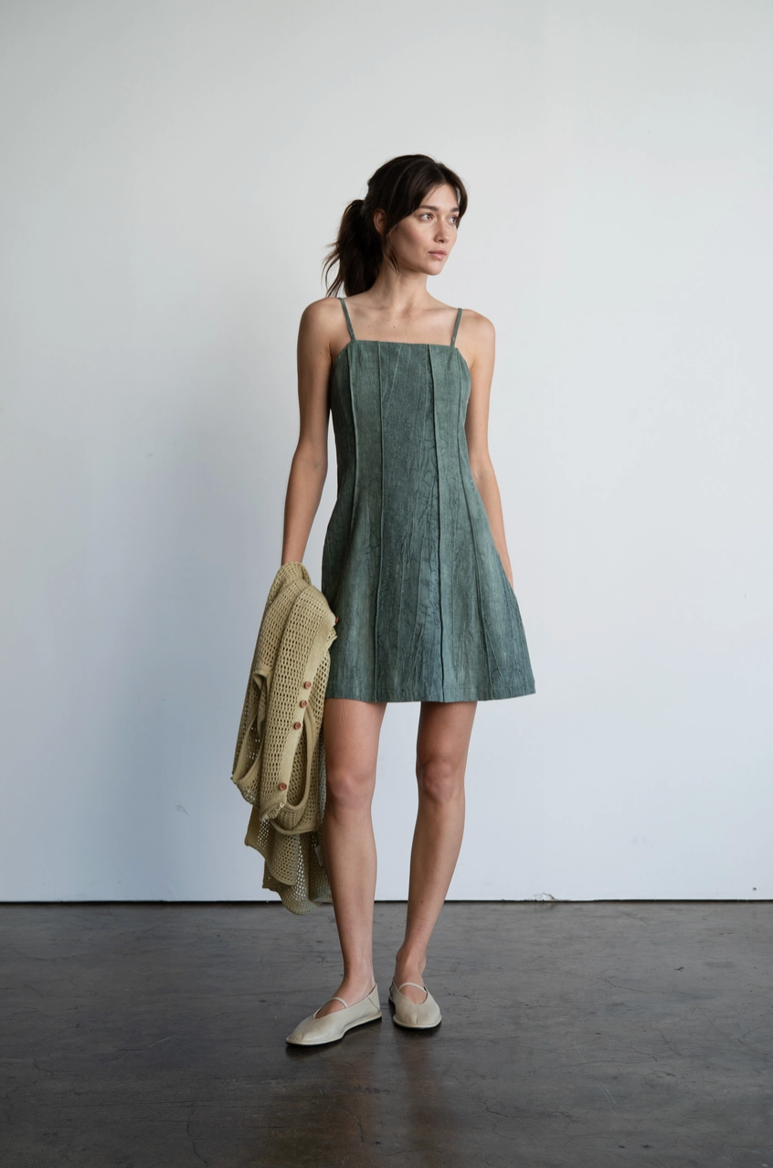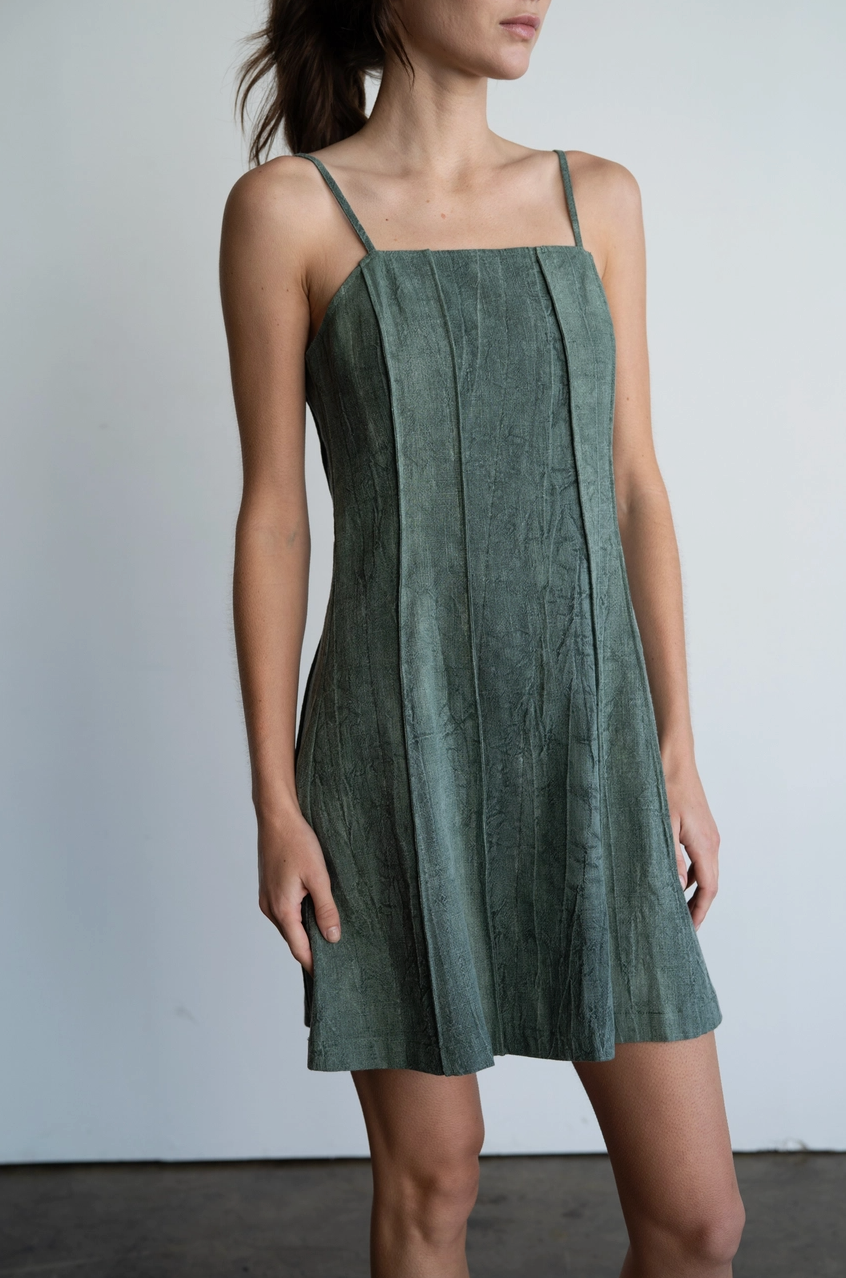 The Wren Washed Mini Dress brings effortless cool to your everyday style. Crafted from textured, washed fabric in a soft sage tone, it features a structured square neckline, subtle seaming for shape, and a relaxed A-line silhouette. Lightweight and easy to wear, this piece transitions seamlessly from brunch to date night.
