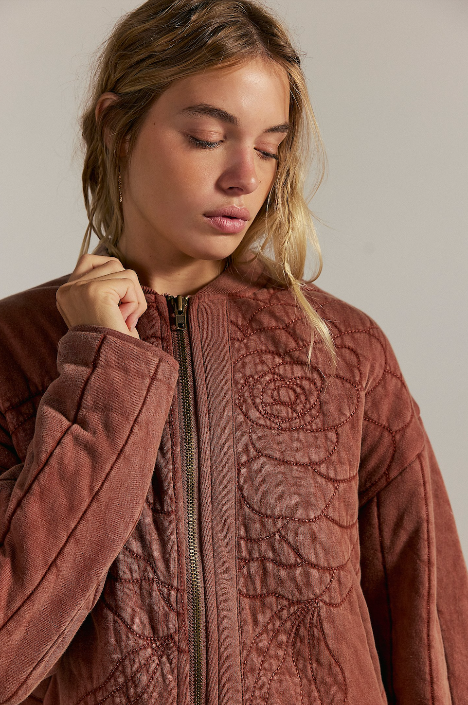 The Rose Zip-Up Sweatshirt by Free People gives cozy a cool upgrade. Designed with soft quilted fabric and tonal floral stitching, this zip-up jacket features a relaxed, boxy silhouette and vintage-inspired texture in a warm cinnamon hue.