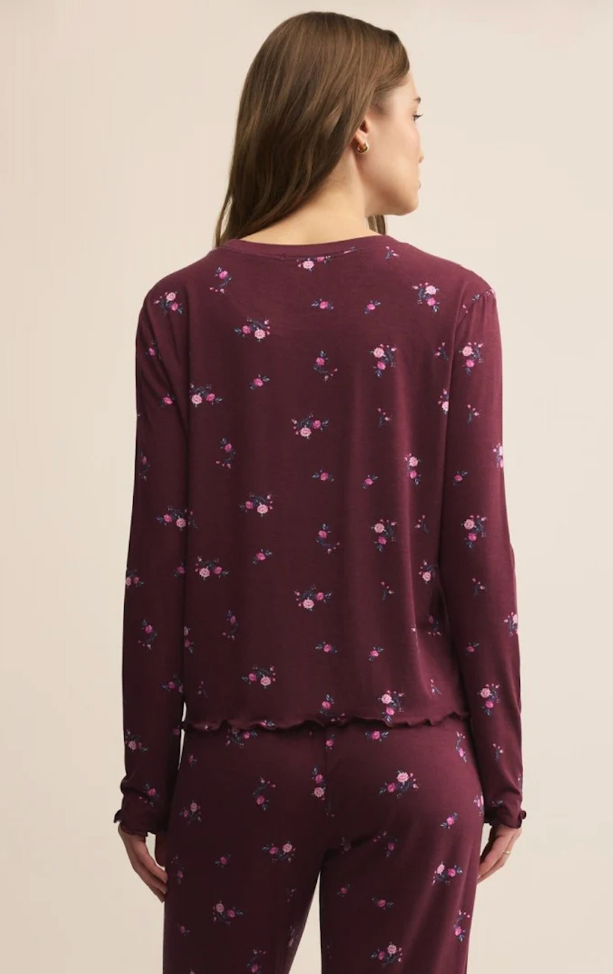 Z Supply – Bella Ditsy Long Sleeve Top (Merlot)