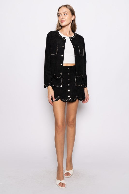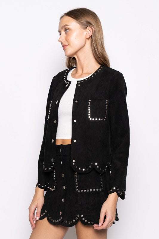 ROWAN STUDDED SUEDE JACKET IN BLACK