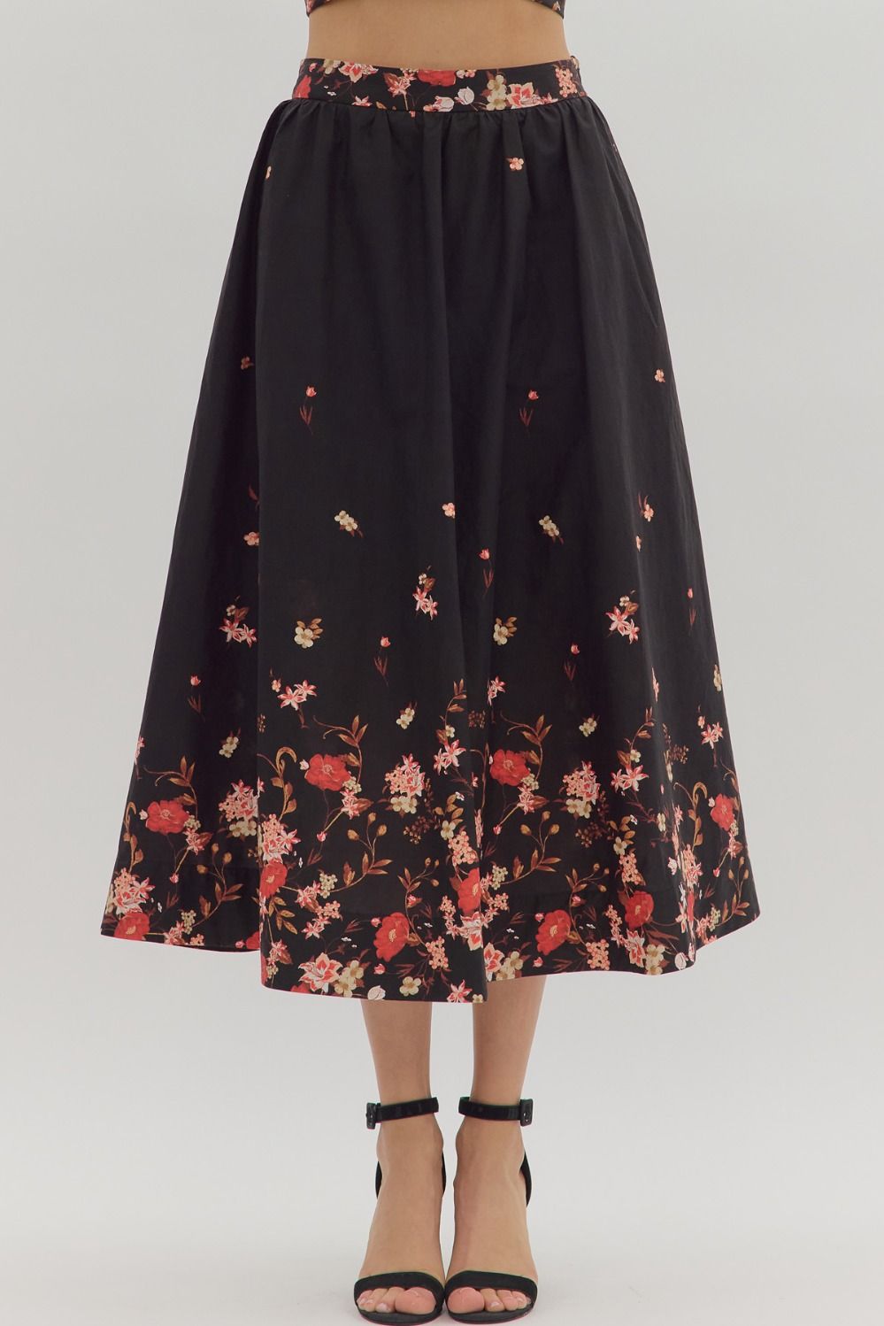 CAMILA FLORAL MIDI SKIRT IN BLACK