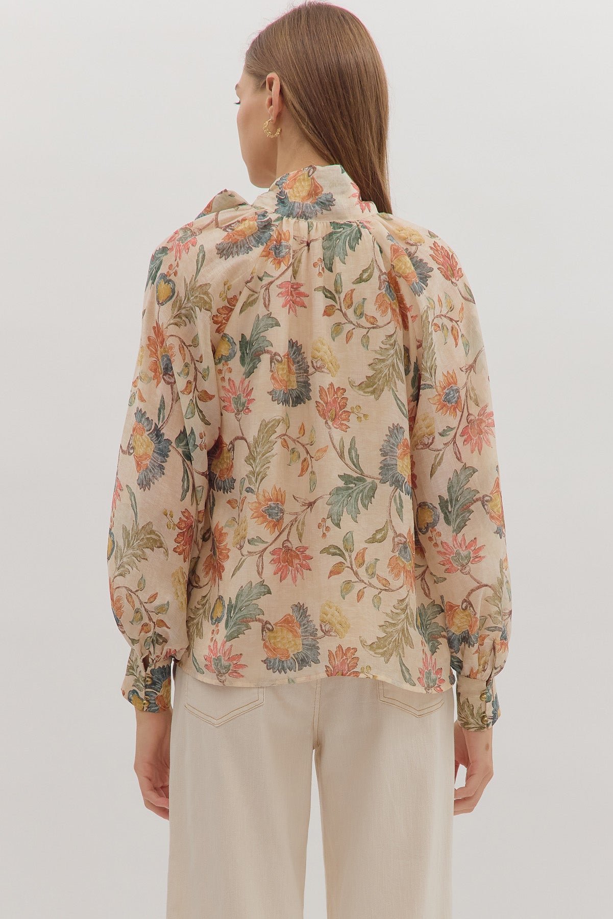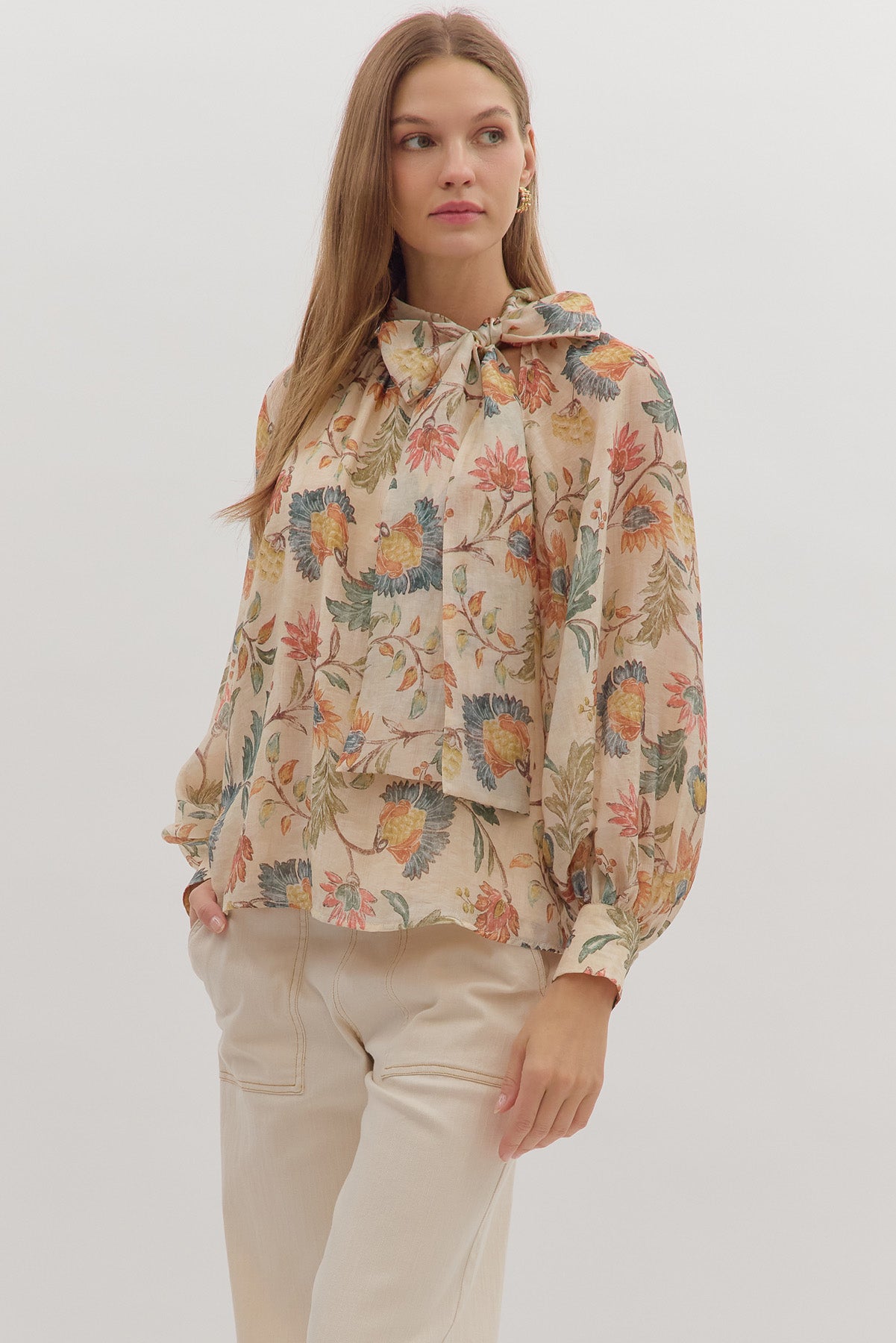 Feminine and timeless, this floral tie-neck blouse adds effortless polish to any look. With its romantic bow detail, billowy sleeves, and lightweight drape, it’s perfect for work or weekend.