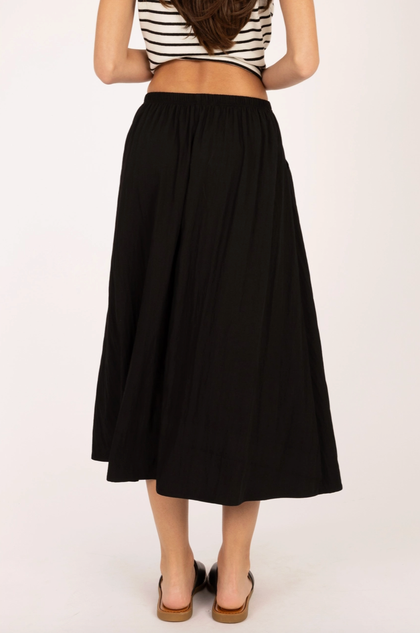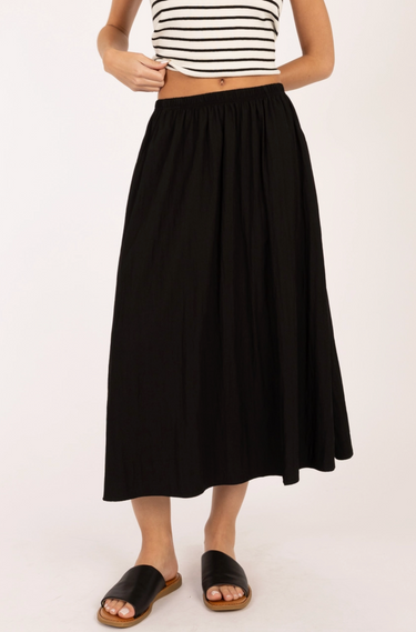 Effortlessly chic and endlessly versatile, the Isla Crinkle Midi Skirt is a timeless wardrobe staple. Designed with a soft, lightweight crinkled fabric and an easy pull-on elastic waistband, this flowy silhouette moves beautifully with every step. Pair it with a cropped tank or a tucked-in blouse for an elevated everyday look.
