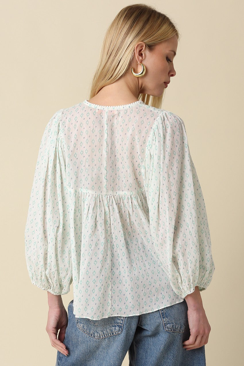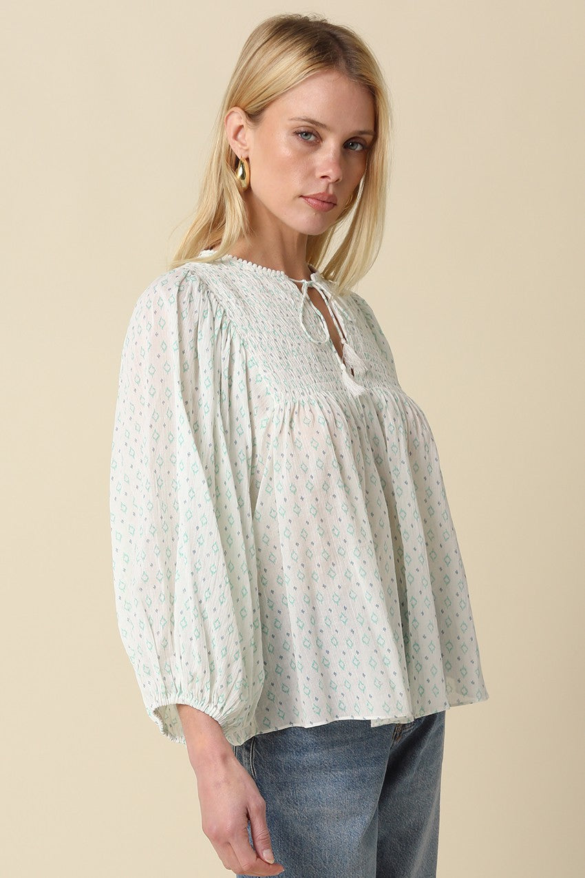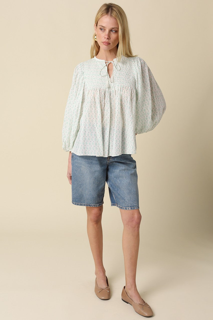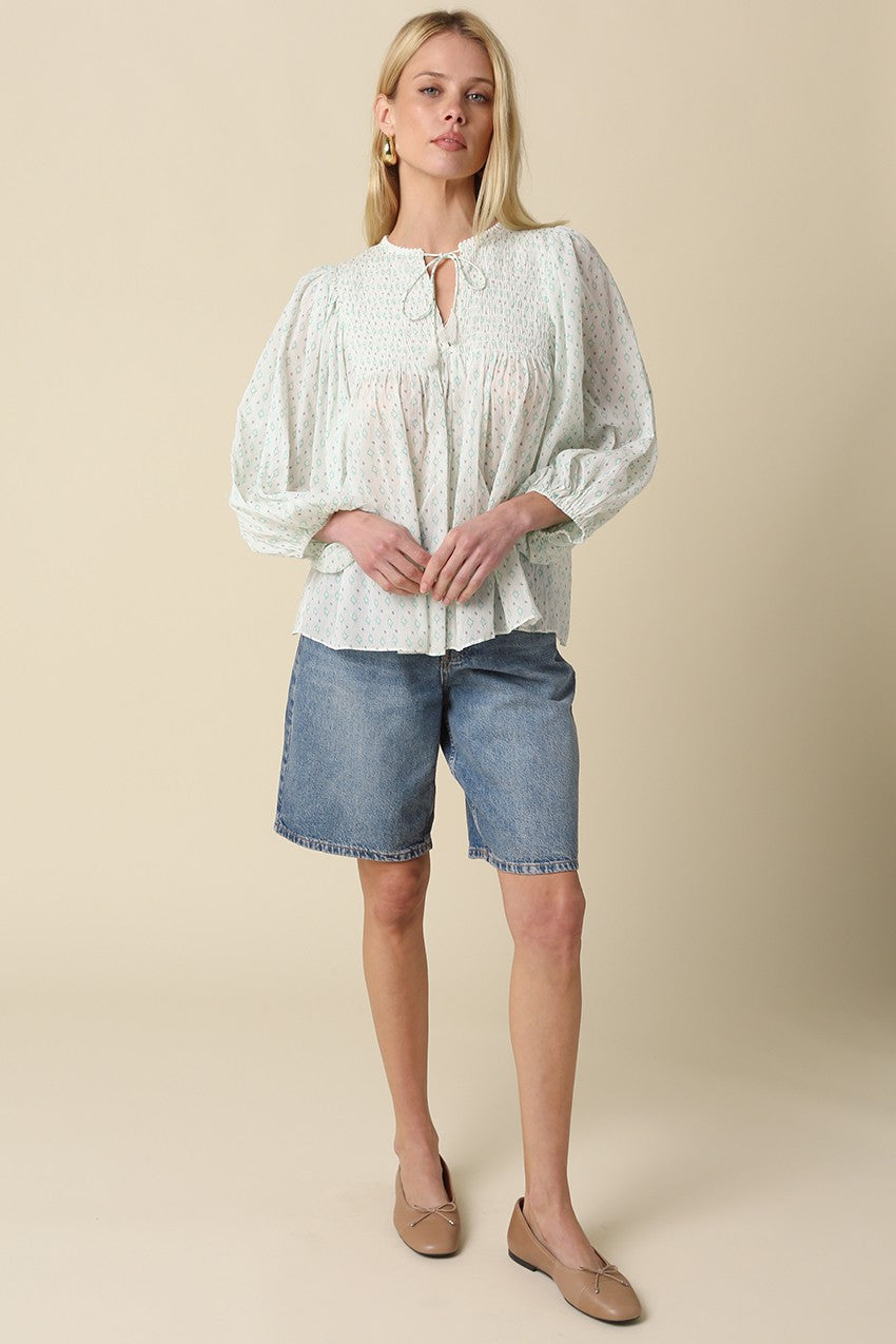 Willow Smocked Peasant Top – Ivory/Mint