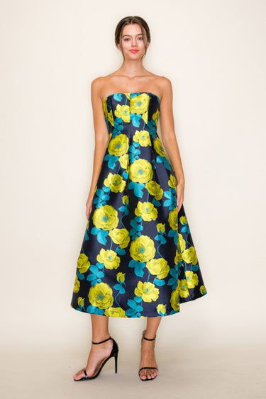 MARIBEL FLORAL JACQUARD MIDI DRESS