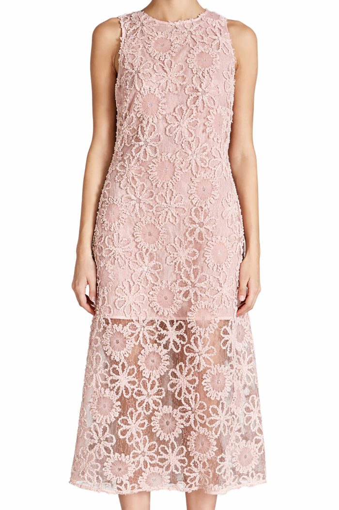 ENDLESS ROSE ELODIE LACE MIDI DRESS IN LIGHT PINK