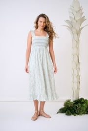 Meet your new favorite sundress—the Palmer Dress in Periwinkle by Brooks Avenue. This effortlessly charming midi dress features a delicate floral print on a soft periwinkle base, perfect for springtime strolls or casual gatherings. With its smocked bodice and wide shoulder straps, this dress offers a flattering fit and feminine silhouette. The flowy skirt finishes with a sweet ruffled hem, adding movement and charm to every step.