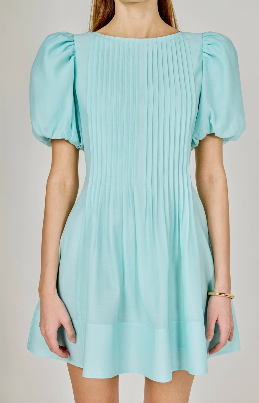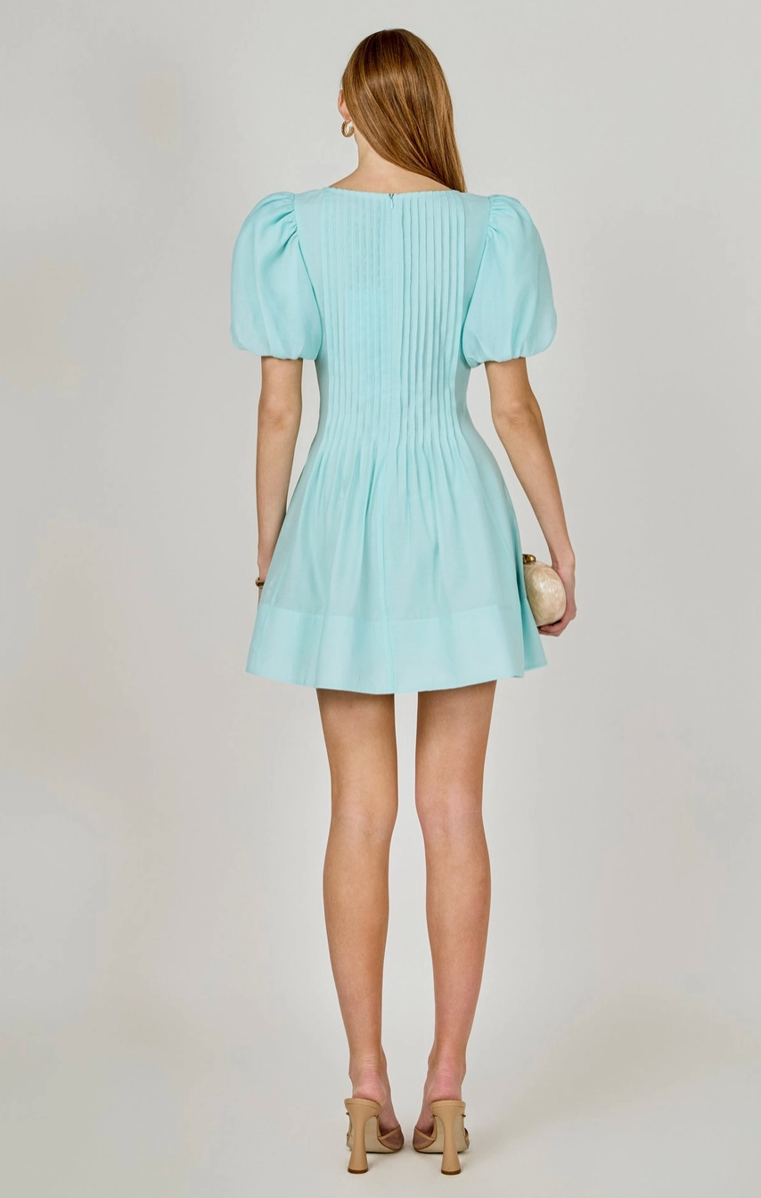 ENDLESS ROSE BRIDGET PINTUCKET MINI DRESS IN AQUA
