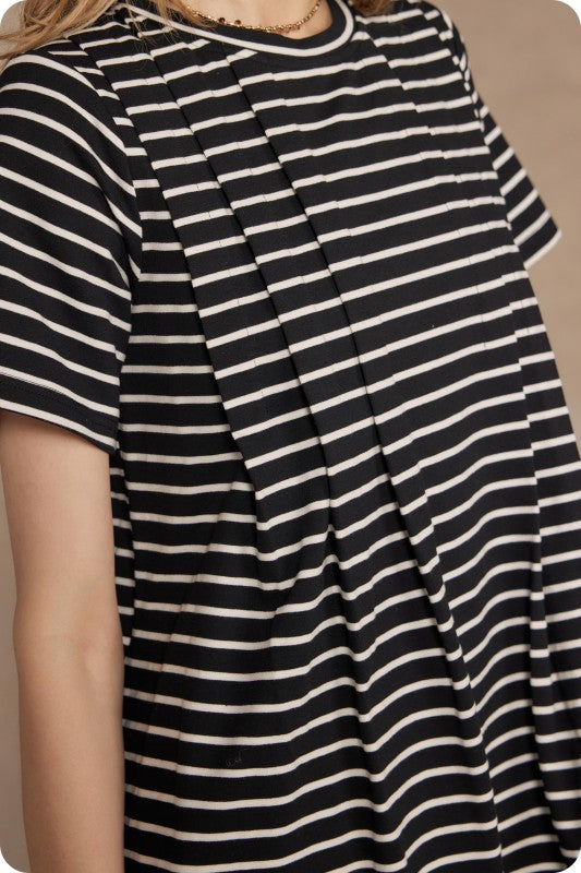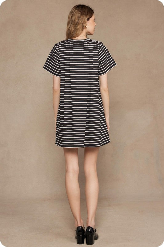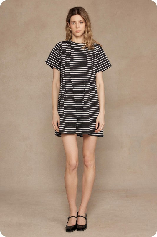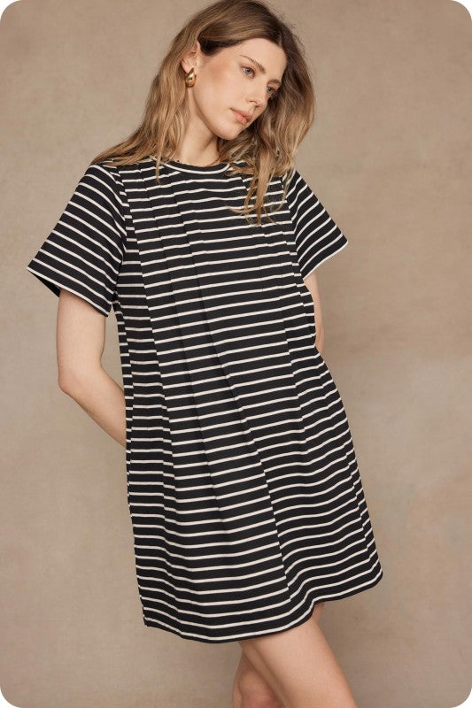 The Sylvie Striped Dress blends timeless stripes with an easy, laid-back silhouette. Its relaxed fit and soft fabric make it perfect for all-day wear, while the classic crew neckline and short sleeves keep the look polished yet effortless. Throw it on with sneakers for daytime chic or elevate it with a jacket and block heels for a night out.