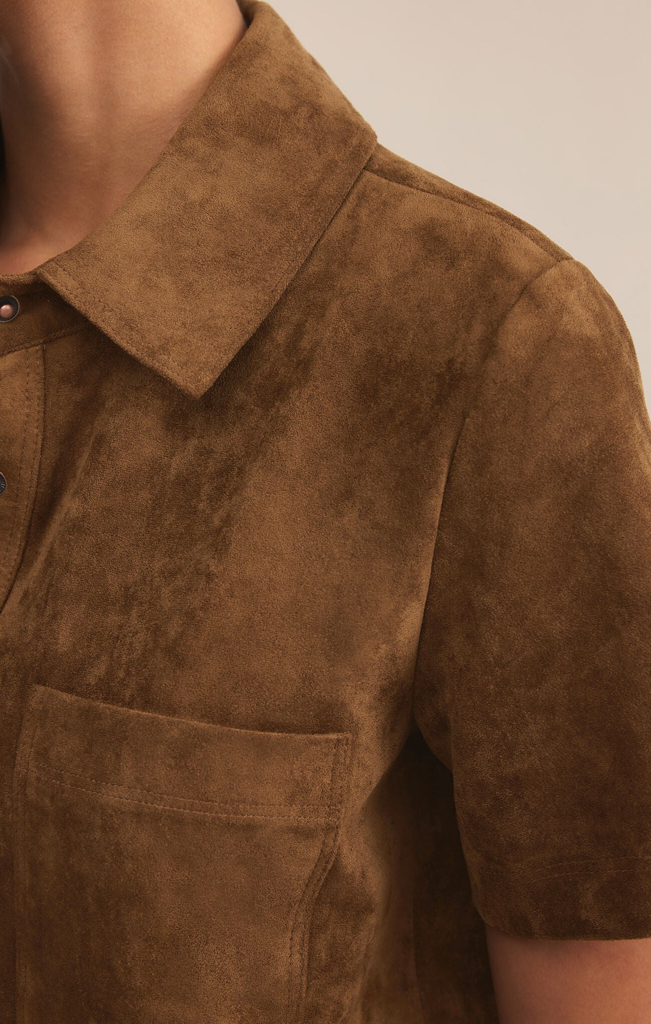 Faux suede fabrication in coconut brown