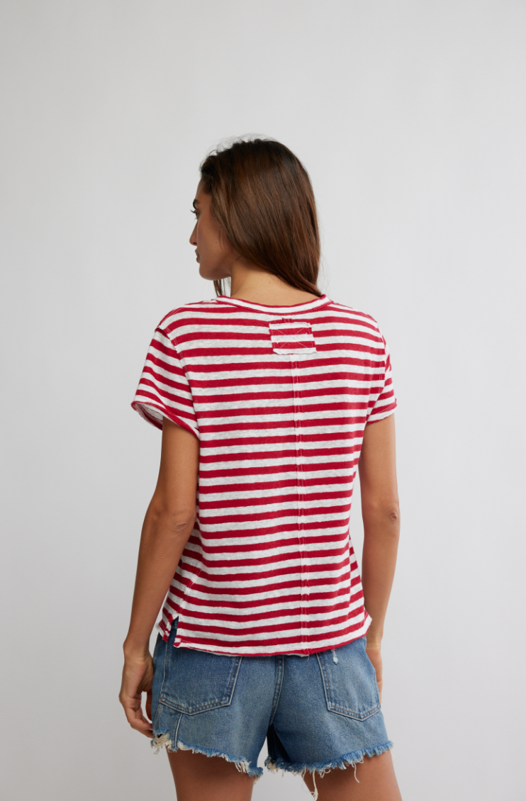 FREE PEOPLE NORA STRIPED TEE IN RED