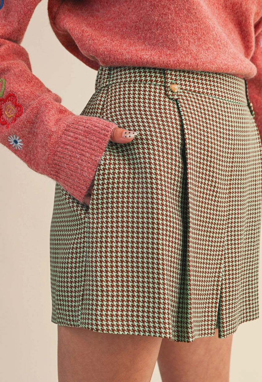 HARRIET HOUNDSTOOTH PLEATED SKORT IN BROWN