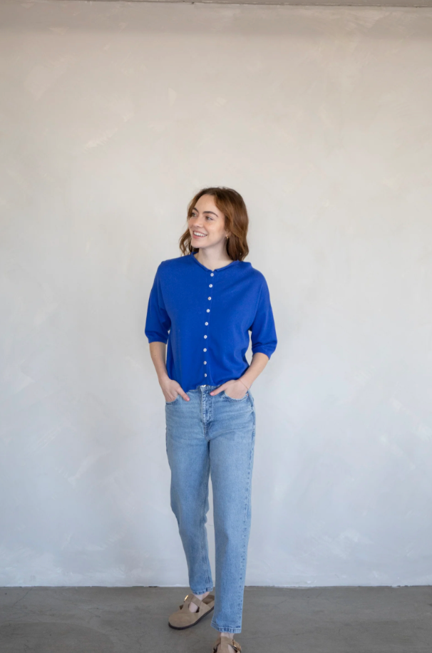 MAREN SHORT SLEEVE CARDIGAN IN COBALT BLUE