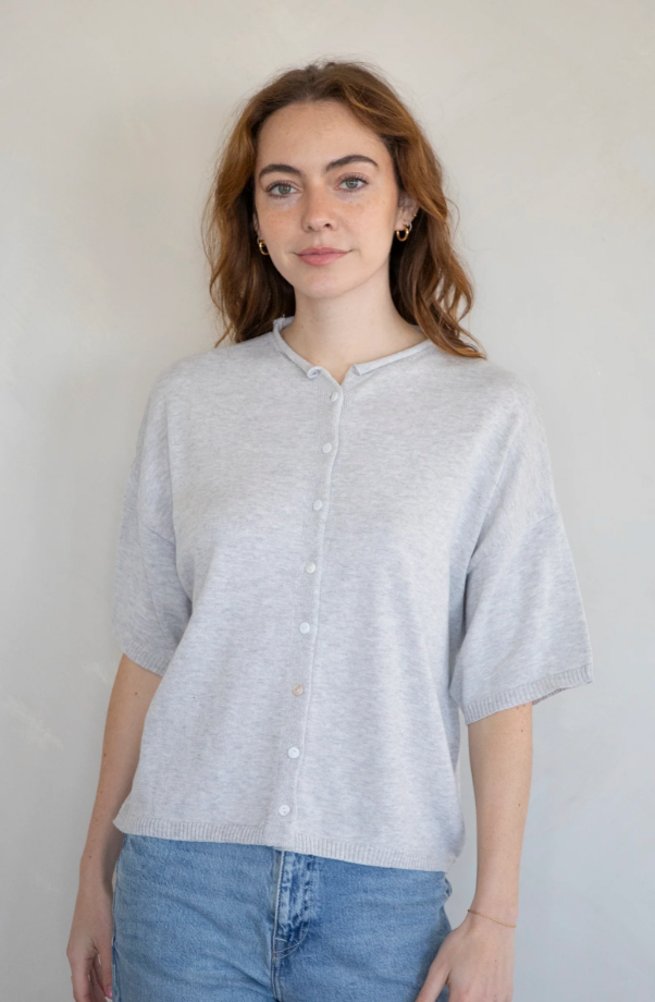 MAREN SHORT SLEEVE CARDIGAN IN GRAY