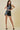 Sleek faux leather two-piece with contrast trim and bold buttons. Features a cropped vest top and matching skort with built-in shorts for comfort and edge.