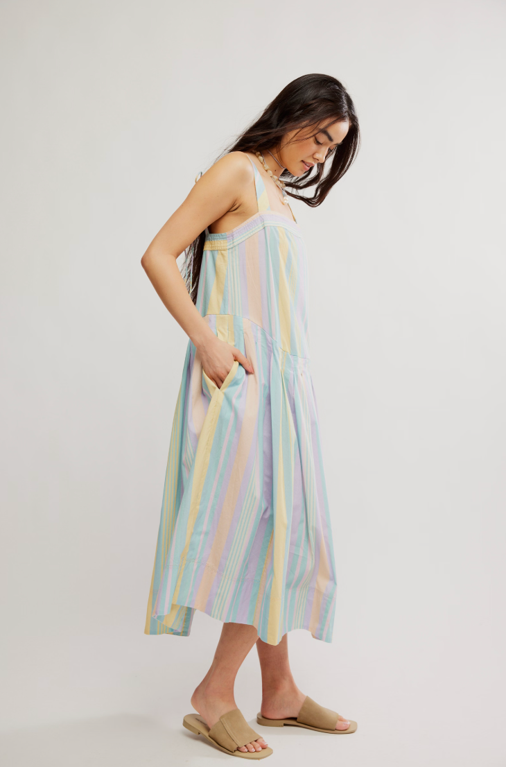 FREE PEOPLE PRIMAVERA STRIPE MIDI DRESS IN PASTEL STRIPES